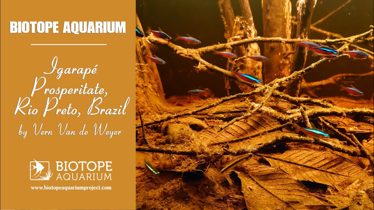 With this biotope aquarium I replicated the shoreline of the mouth of the igarapé Prosperitate. There are tree trunks submerged and a lot of roots and branches: this is the perfect habitat for the Taeniacara candidi. They hide between the roots and inside the leaf litter layer. Paracheirodon axelrodi live in large schools above the leaflitter.