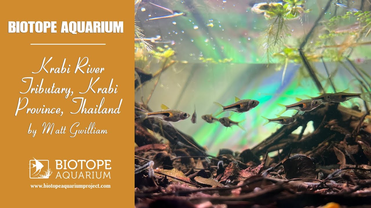 The 45L forms a shallow bank of a pool, where roots emerge from the substrate. It is filled with small twigs and leaf litter, with grass emersed from the surface.