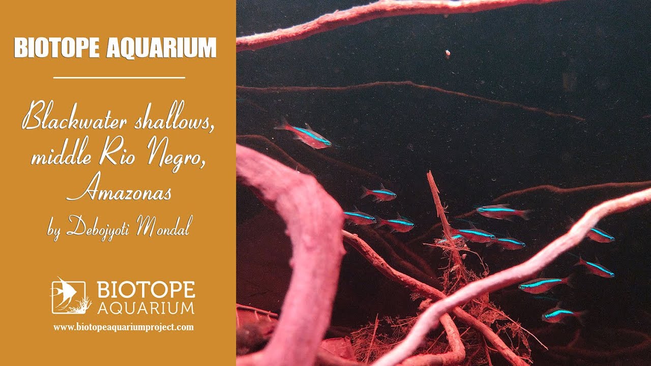 This 86L aquarium boasts species of fish found thriving here among the maze of roots and downed branches in the shallows of a tiny section of flooded woodland not far from the city of Barcelos. The Cardinal tetra (Paracheirodon axelrodi), perhaps the most well-known of these, takes centre stage for the majority of this movie, its unmistakable neon blues and reds strikingly contrasted with the tea-colored water.
