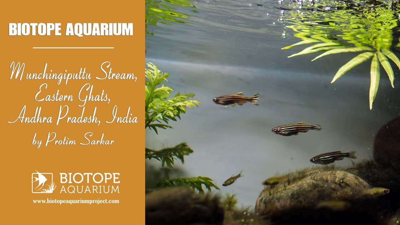 This 102L biotope aquarium replicates the natural habitat of Danio rerio (Zebra Danio), Horadandia brittani, and Carinotetraodon travancoricus (Pea Puffer) found in the untouched Munchingiputtu Stream of the Eastern Ghats, Andhra Pradesh, India.